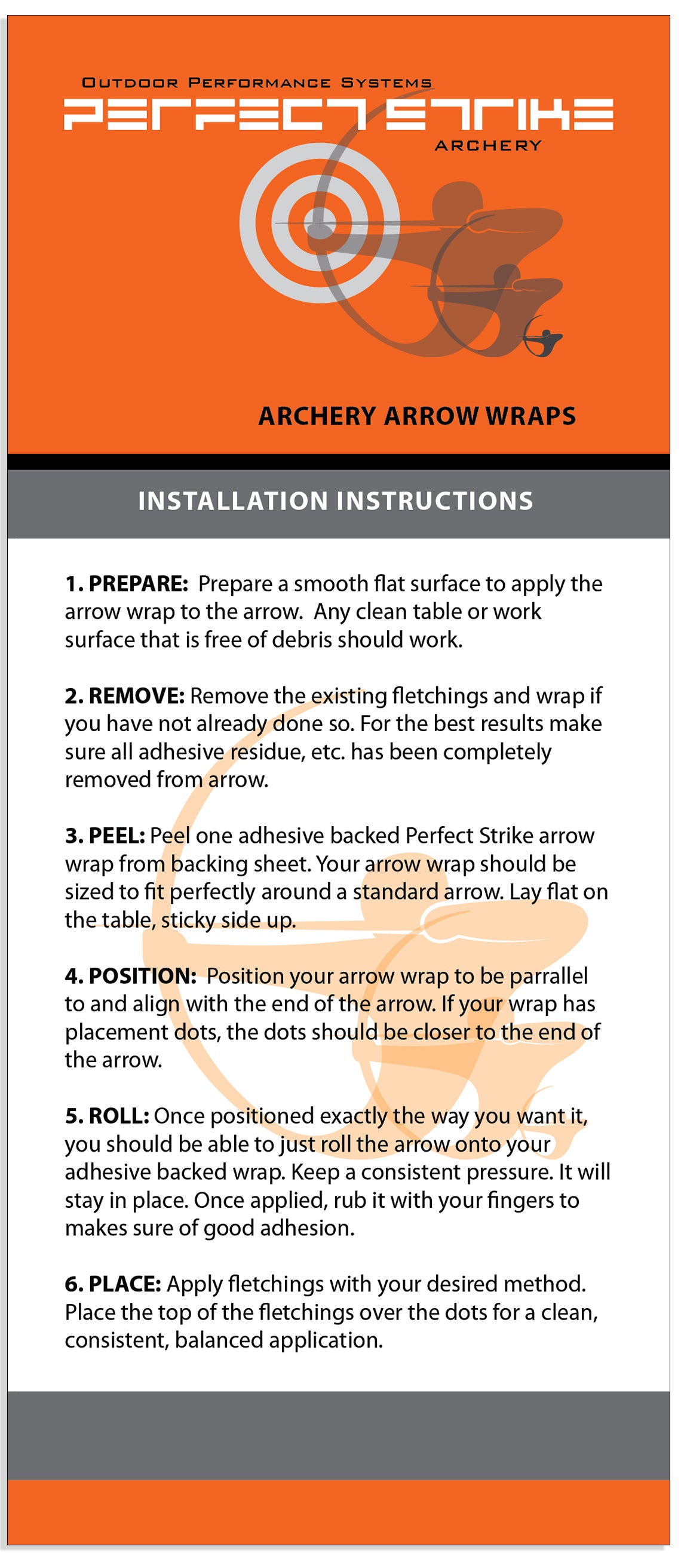 - PERFORMANCE – Perfect Strike arrow wraps are made of vivid, easy to locate colors. The Smooth finish wraps have almost no air drag when applied to arrow. Every shot true and straight just the way it was fired. Designed to help you get better, quicker.