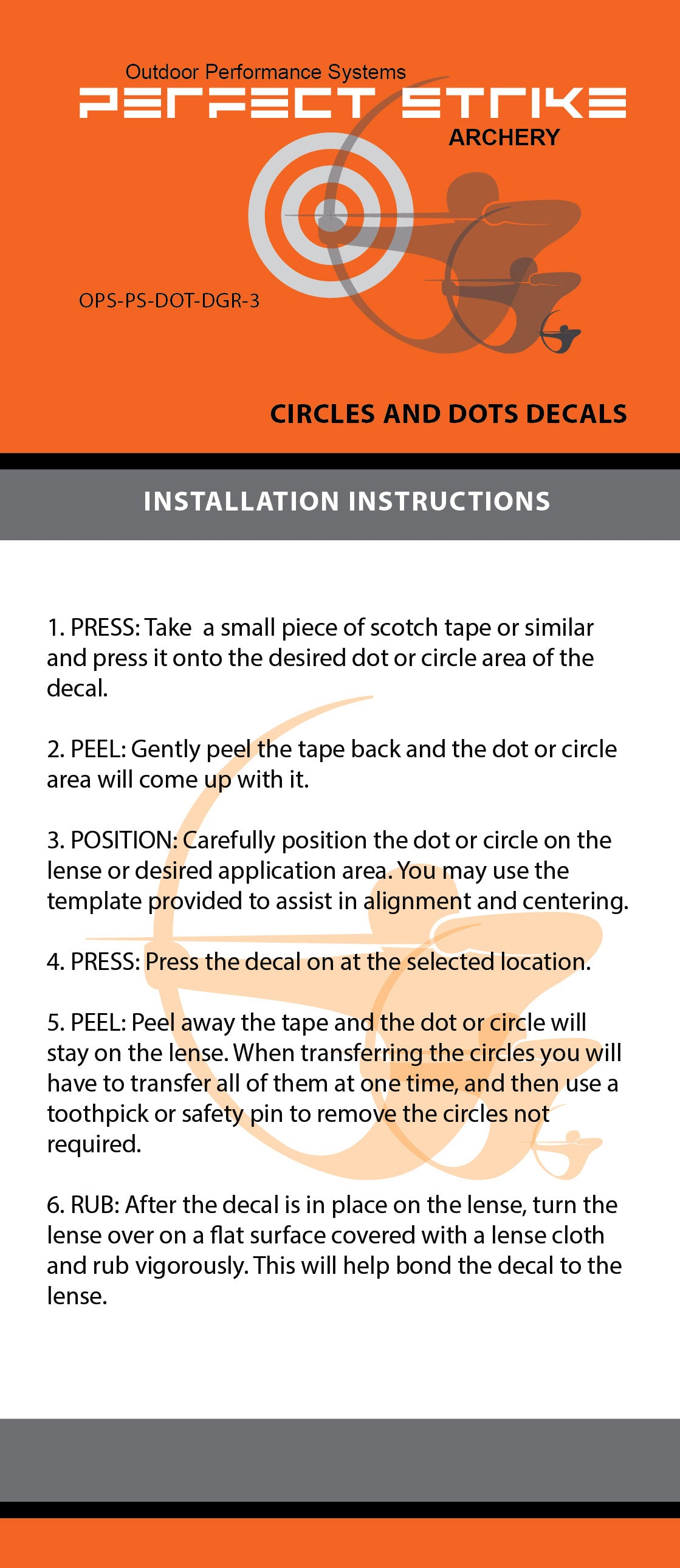 - CIRCLES & DOTS DECALS : Perfect Strike Archery adhesive backed vinyl decals for scope lenses. Each set of decals includes instruction for applying circle or dot shape to scope lens.
