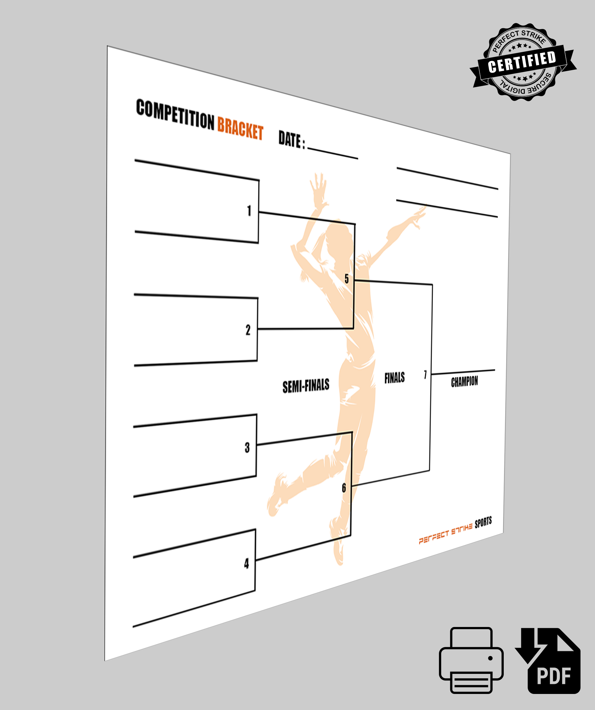 PRINT DOWNLOAD. Perfect Strike Competition Bracket for Team Tournaments or Skills Competitions. VOLLEYBALL-W.
