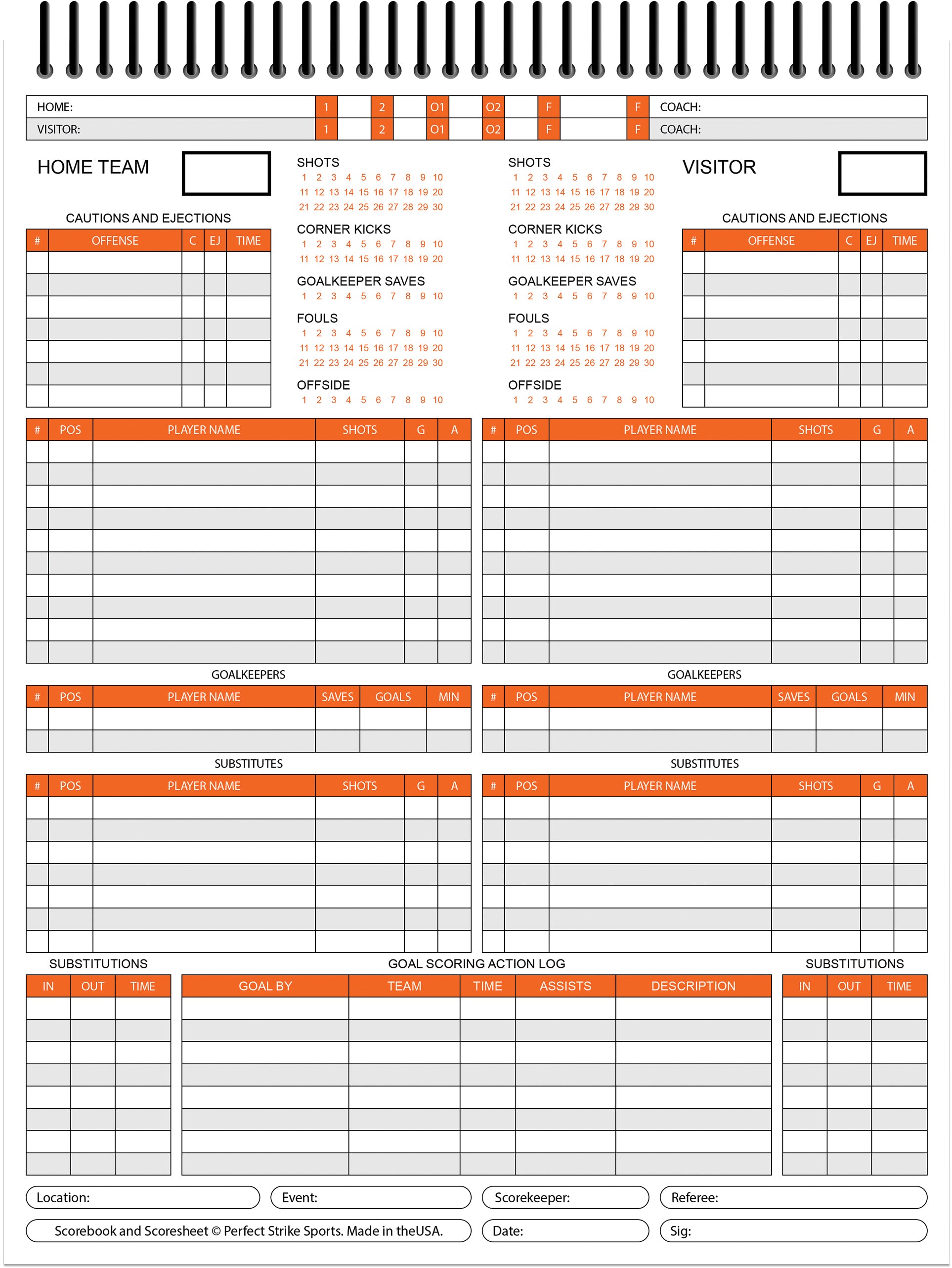 - MADE IN THE USA - Perfect Strike soccer scorebooks are made in the USA. Professionally crafted by Perfect Strike Sports.