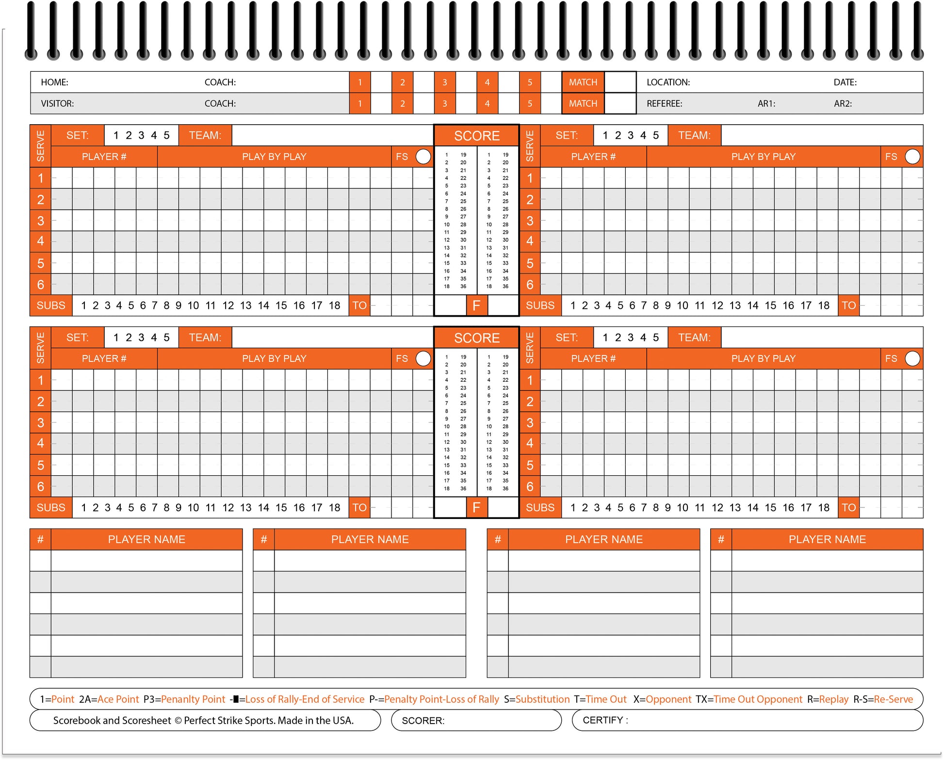 - MADE IN THE USA - Perfect Strike volleyball scorebooks are made in the USA. Professionally crafted by Perfect Strike Sports.